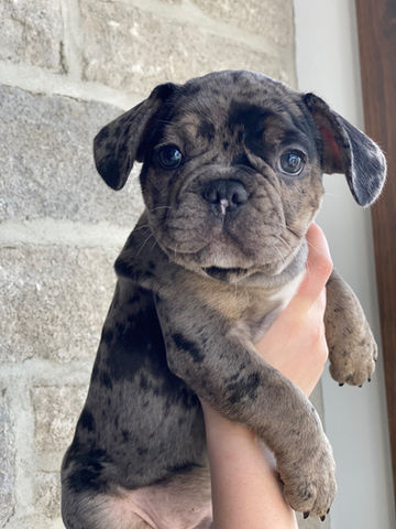 Femelle bleue merle qui a joint notre programme d’élevage au printemps 2022